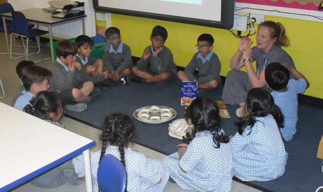 Class 1W listened carefully to the story of why Jewish festival of Passover (Pesach) celebrated through a picture book and a pop-up book. They observed, examined and discussed a real Sedar plate and Matzo unleavened bread, as well discussing the significance of the Becher (goblet) within the rituals of Passover. They thoroughly enjoyed their discussion and asked lots of interesting questions. One of the children sang one of the songs that he had sung at his own family Sedar evening.